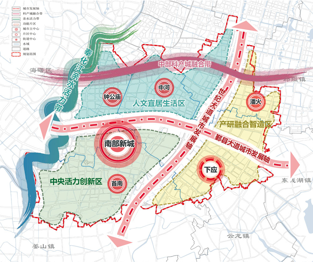 四区:人文宜居生活区、高能级服务集聚区、城市核心拓展区、生态田园区;