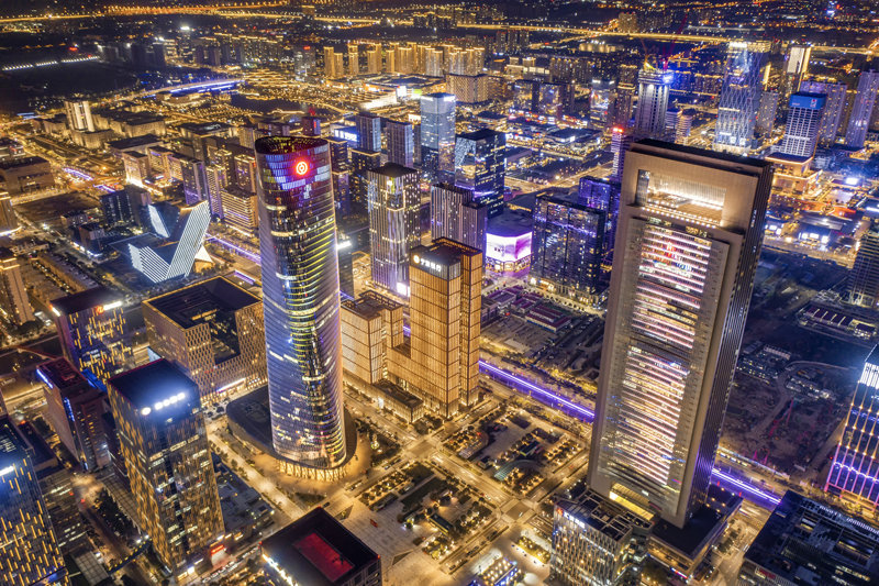 鄞州商贸综合体分布密集,个性化、多样化的消费新常态不断涌现,是宁波的“商业活力核心区”,拥有阪急百货、开市客、宏泰、万达、印象城等国内外顶尖商业IP,还有宁波商会国贸中心、环球航运广场、中银大厦,以及全省最高楼——宁波中心(409米)。从潮流商业地标到超高层商务封面,鄞州正以蓬勃的商业活力与硬核的城市能级,勾勒出宁波商贸发展的璀璨天际线。